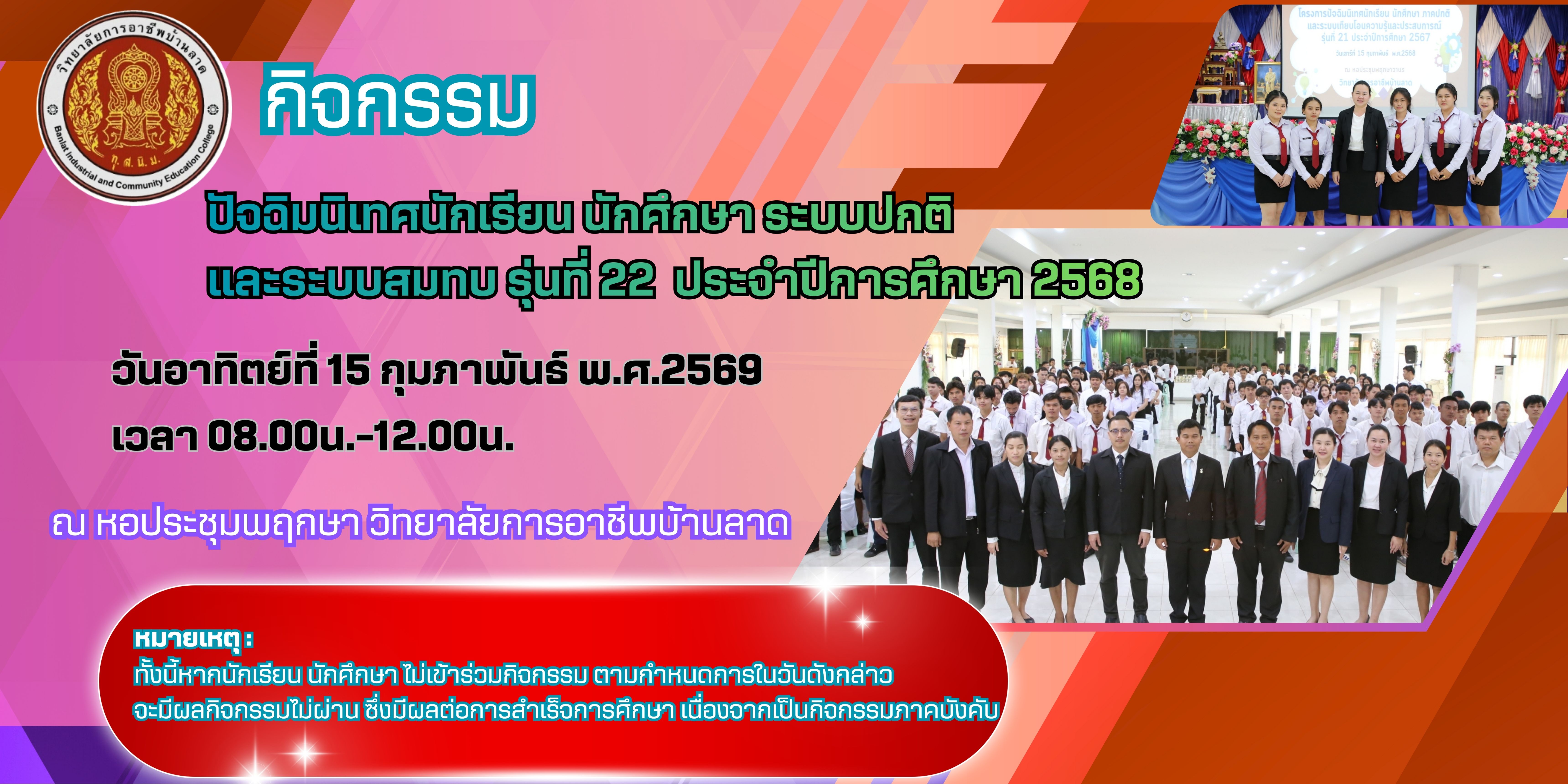 29-12-68 : ประกาศวิทยาลัยการอาชีพบ้านลาด เรื่อง รายชื่อผู้สอบผ่านการคัดเลือกบุคคลเพื่อเป็นลูกจ้างชั่วคราว ประจำปีงบประมาณ พ.ศ. ๒๕๖๙